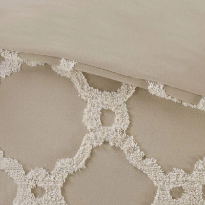 Refresh your bedroom décor with the charming style of the 3pc Leena Tufted Cotton Chenille Geometric Duvet Cover Set. Made with 100% cotton in duvet cover, it displays a luxurious chenille design in an all-over geometric pattern that adds a soft texture to the bedding set. The matching shams perfectly coordinate with the duvet cover to create a classic shabby chic look. Machine washable for easy care, this cotton chenille duvet cover set provides a delightful and captivating update to your bedroom. Button closures and the internal ties on 4 corners to secure the insert from shifting. Due to the nature of the chenille fabric, some shedding will occur naturally in the first 3-4 washes.
