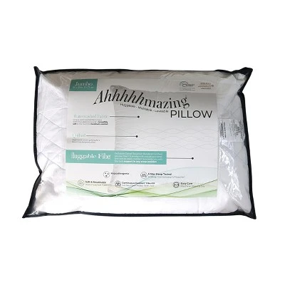 Your new favorite pillow!Relax and drift to sweet sleep with the Ahhhhhmazing™ down alternative pillow. Our Continuous Comfort® Fill is specially designed to move with you as you sleep and can be easily molded so you can position your head, neck and arms. Unique waterwashed fabric has a distinctive appearance and is incredibly soft to the touch for maximum comfort. Sold separately from comforter: https://www.target.com/p/item-direct/-/A-86043202Additional Details: Hypoallergenic – Made of Materials To Help Promote restful Sleep Perfect For All Sleep Positions Waterwashed – Incredibly Soft Microfiber Fabric Continuous Comfort® Filling (100% Polyester) Blue Ribbon Wave Design Feature OEKO-TEX® Certified Textiles Are Certified Free Of Harmful Chemicals Global Recycled Standard Certified Sold Individually Easy Care – Machine wash and dry Assembled In The USA Of Imported MaterialsSizes: Jumbo Size – 20 x 28 – 40 oz. (fits standard and queen pillowcases)