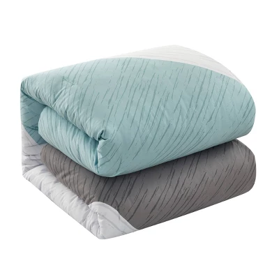 Ellison Embroidered Colorblock Comforter Bedding Set Dark Teal