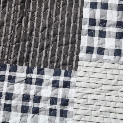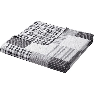This quilt has beautiful reversible grey and white patchwork patterns. 3 Piece sets include one oversized bedspread and two shams. The ensemble offers a variety of expertly crafted details that complete the relaxed presentation. These bedspreads are made with 100% high quality ultra-soft microfiber and are machine washable on gentle cycle in cold water for easy cleaning and maintenance. Tumble dry on low. Match curtains are available sold separately.