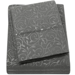 Vine Print 90GSM Brushed Microfiber Soft Wrinkle Free Sheet Set Gray By Plazatex